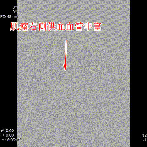 △術前造影可見肌瘤左右側的供血豐富。