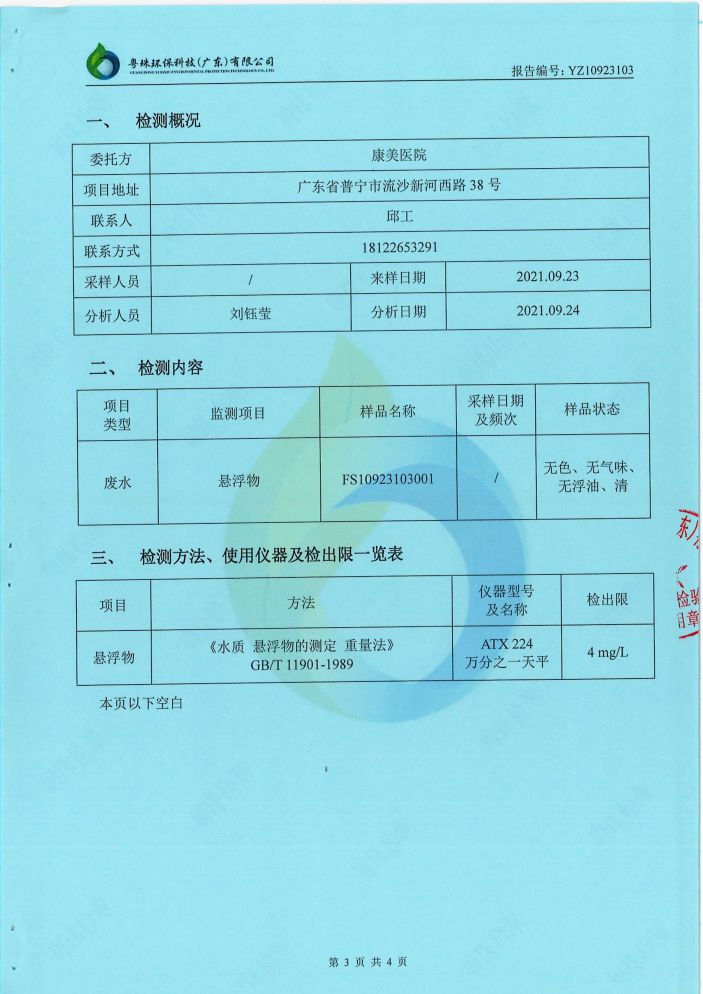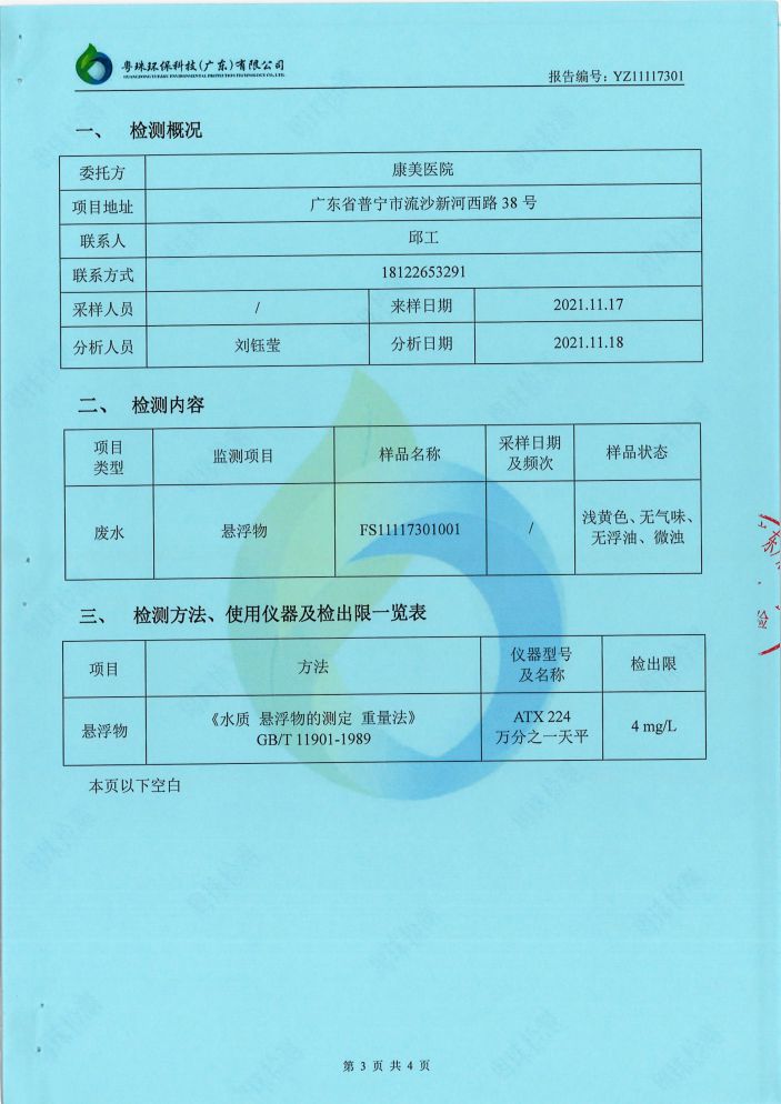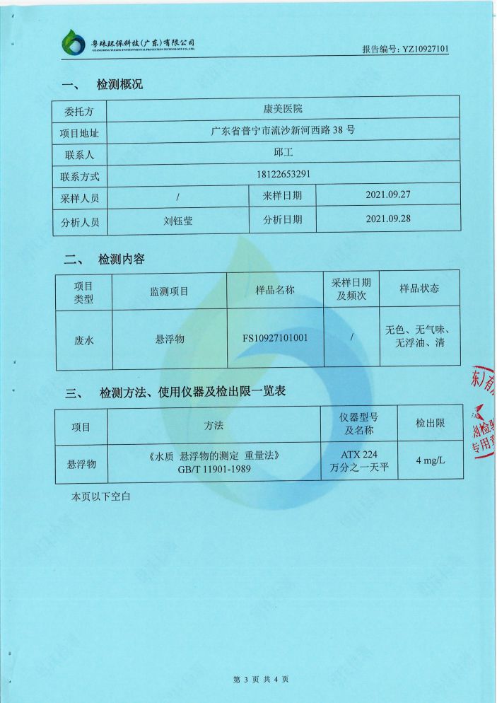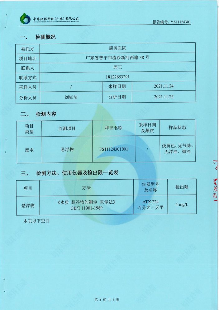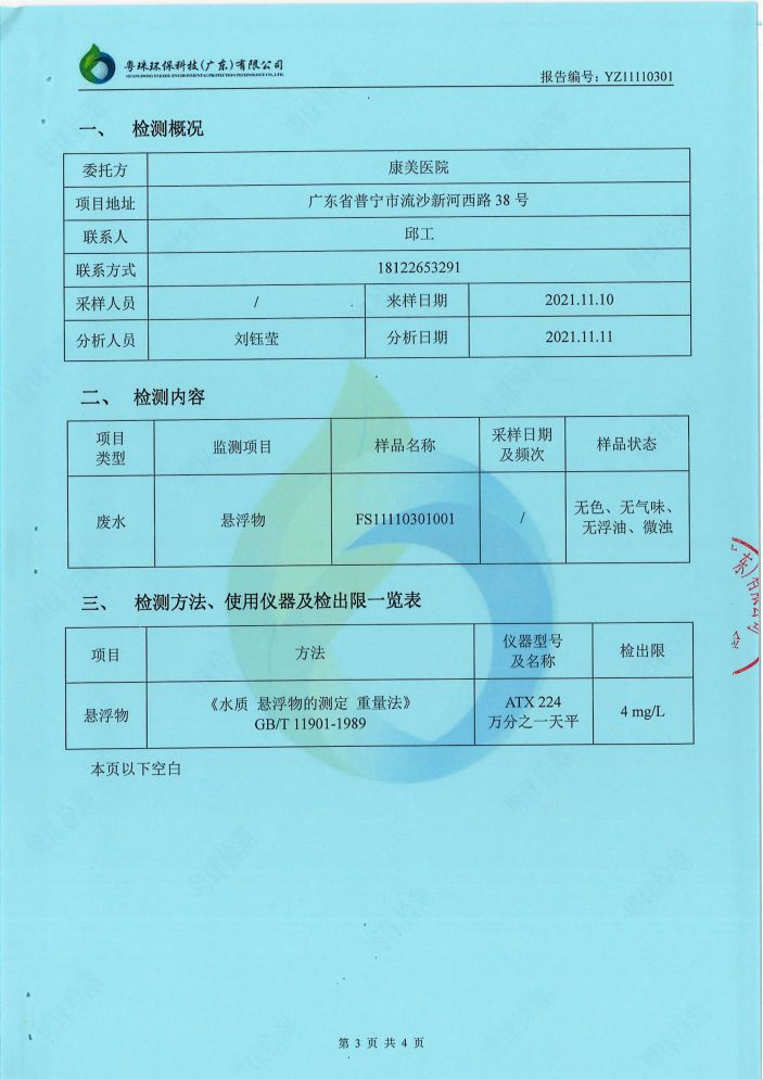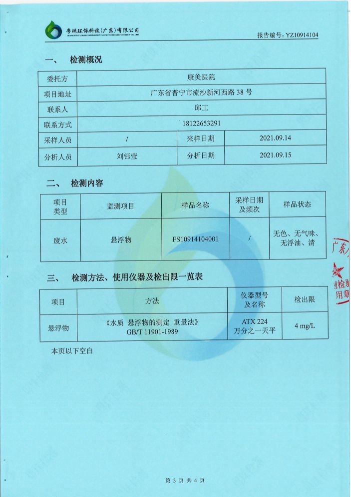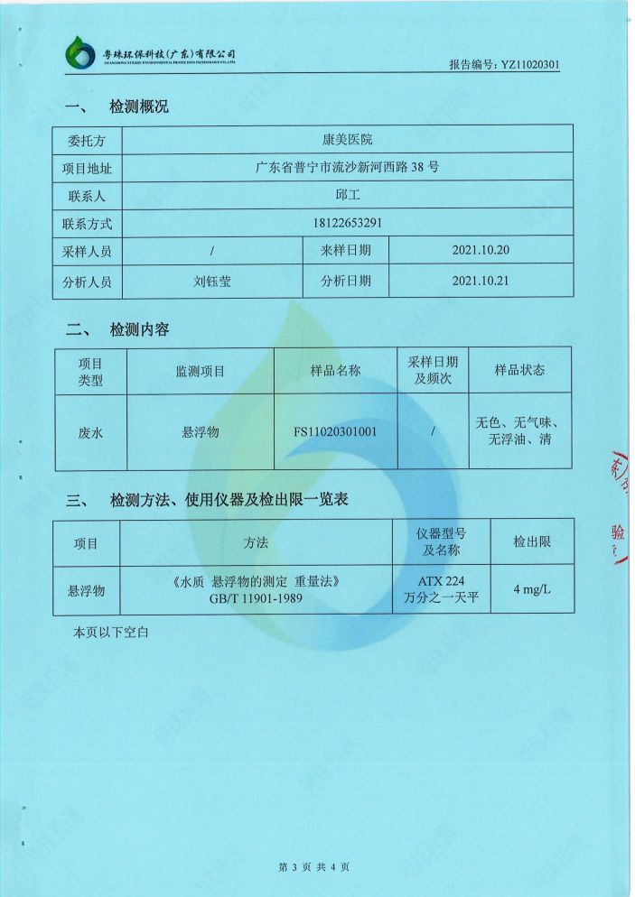 您現在的位置是:康美醫院網站 > 信息公開 > 環境監測信息 > 康美醫院 懸浮物2021檢測報告
